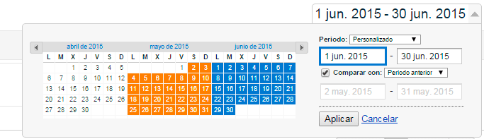 Como ya dijimos en el capítulo anterior, en la esquina superior derecha puedes escoger la fecha que quieras para hacer informes, comparar con el mes o el año anterior, ver los datos por días o por semanas… todo a gusto del consumidor.